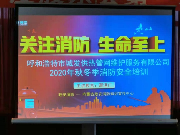 培訓會上,邢澤廣教官以“生命至上 關注消防”為主題,結合公司制定的《呼和浩特市城發(fā)供熱管網(wǎng)維護服務有限公司2020年冬春火災防控工作實施方案》,并通過具體案例分析,對遇到火災的正確處理方式等內(nèi)容進行了詳細、全面的講解,同時精心準備了具有實際教育意義的小視頻課件。