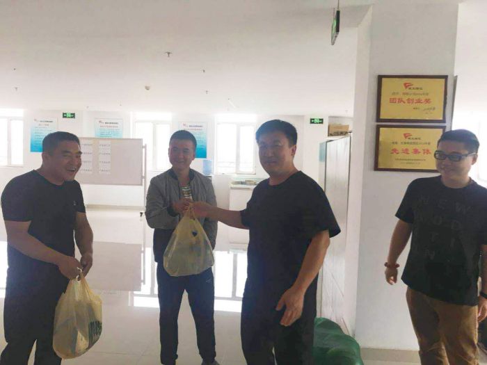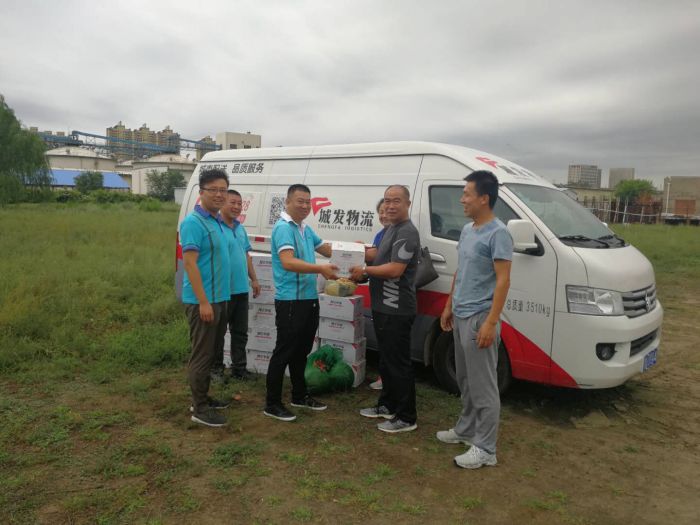 2018年8月17日,城發(fā)物流公司工會(huì)組織開展了暑期慰問、清涼一夏的送清涼慰問園區(qū)一線員工的活動(dòng)。黨支部書記楊福平、經(jīng)理丁雪峰等一行為物流公司一線員工送去了慰問品。